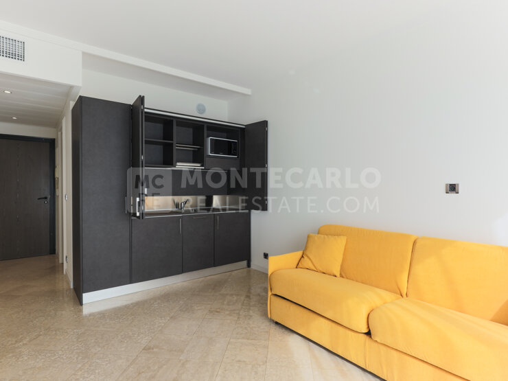Situé dans une résidence avec concierge, beau studio à usage mixte. Il se compose d'un hall d'entrée, d'une pièce principale avec cuisine récemment rénovée et mobilier neuf, d'une salle de bains et terrasse. Le bien inclus dans le prix de vente une belle cave et un grand parking.