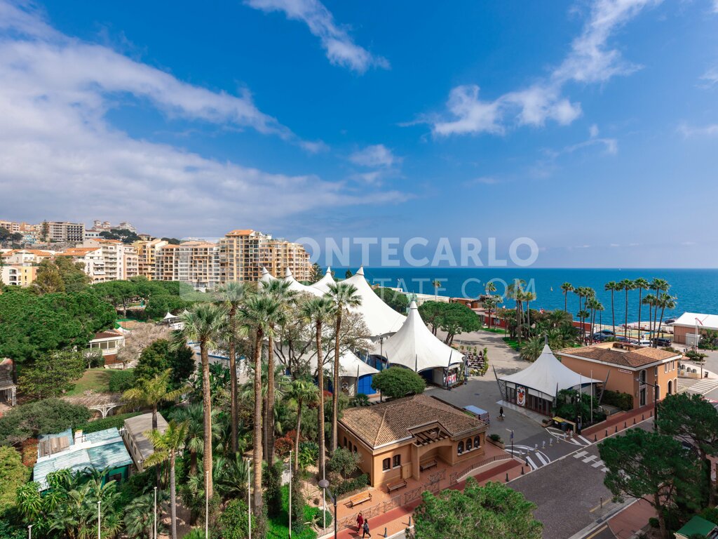 Ce beau et spacieux appartement de trois pièces s'ouvre sur un hall d'entrée accueillant, menant à un salon généreux baigné de lumière, directement ouvert sur une terrasse offrant des vues à couper le souffle sur la mer et le célèbre chapiteau de Monaco. La cuisine équipée, avec son coin repas pratique, est un véritable appel à la convivialité et aux moments partagés, tandis que les deux chambres, chacune ouvrant sur une seconde terrasse privative, garantissent intimité et sérénité. Complétées par deux salles de bains élégantes, ces pièces offrent un cadre de vie idyllique.