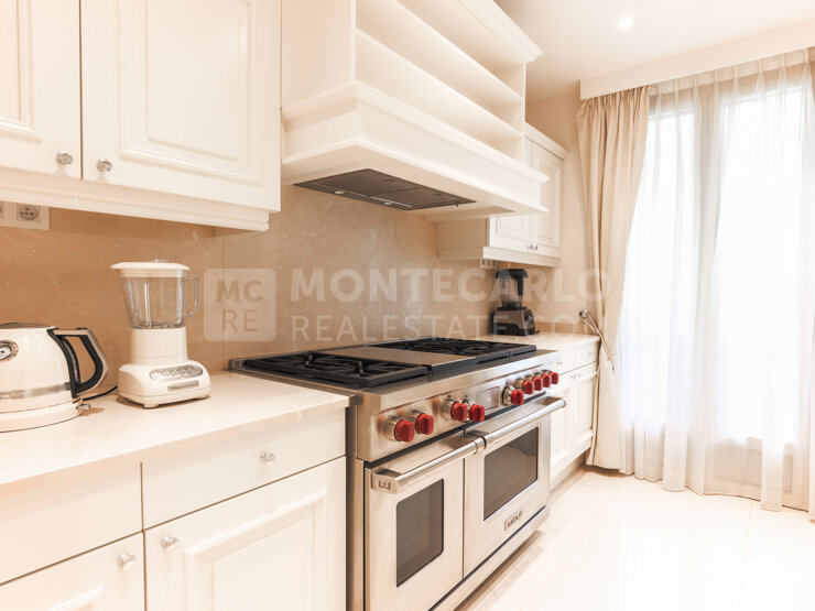 Magnifique appartement entièrement rénové, offrant des finitions luxueuses, une spacieuse terrasse avec vue sur la mer et les plages du Larvotto. Deux grandes chambres en suite, cuisine équipée haut de gamme et cave. Une opportunité rare ! Un box fermé est inclus dans un immeuble mitoyen.