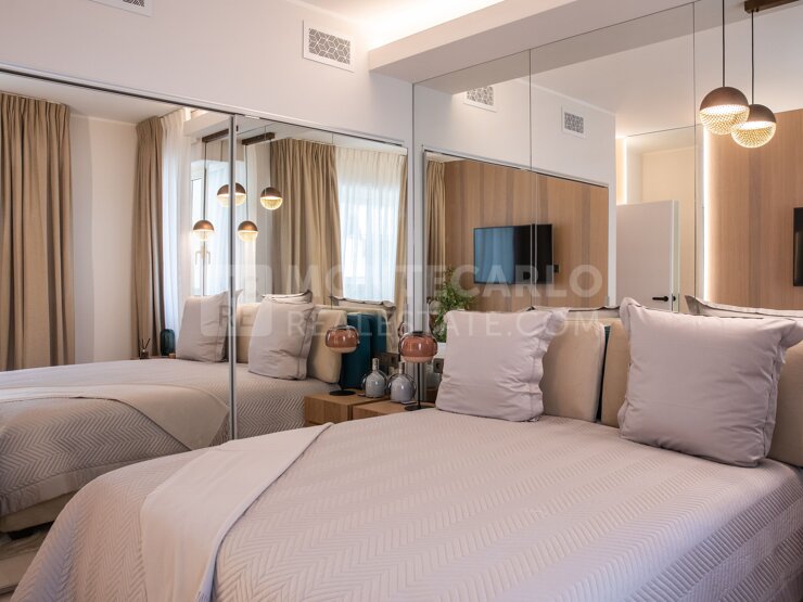 Ce somptueux appartement, récemment rénové et intégralement meublé, offre une surface totale de 248.27m² dont 94.02m² de terrasse aménagée avec pergola, recréant l’ambiance d’une villa avec son propre jardin suspendu.