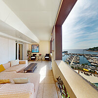 L’appartement jouit d’une vue dégagée sur les jardins paysagers, le Chapiteau de Fontvieille ainsi qu'une vue panoramique sur la mer Méditerranée, dans un environnement privilégié.