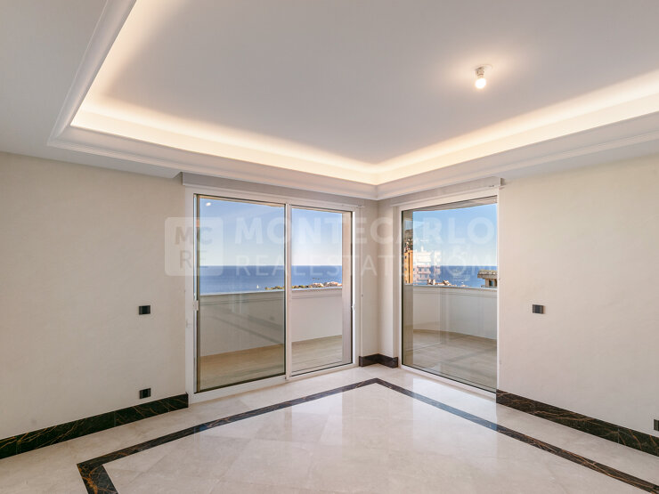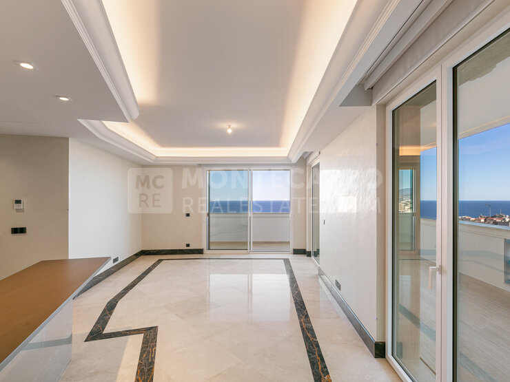 Exclusivité - Situé dans une Résidence neuve et sécurisée de style "belle époque" avec Concierge, ce magnifique 3 pièces neuf, incroyablement lumineux offre une surface totale de 157m² et bénéficie d'une vue exceptionnelle sur la mer, Monaco et alentours.