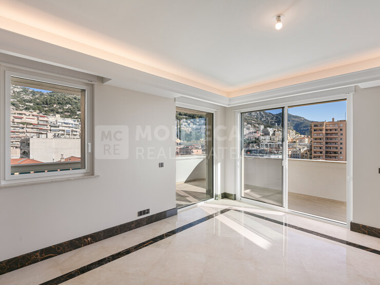 Doté d'une conciergerie dédiée, ce grand appartement bénéficie d'un emplacement de choix dans le quartier tranquille des Moneghetti, proche de tous commerces.