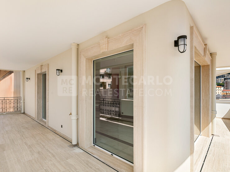 Nous vous proposons à la location un magnifique appartement neuf de 2 pièces, d'une superficie totale de 100.7m² situé en étage élevé de la nouvelle Résidence Villa Ninetta de style Belle époque avec balustres turquoises, moulures artisanales et encadrement des fenêtres en travertin.