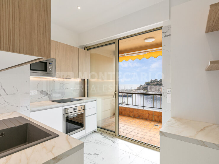 Un balcon prolonge agréablement les espaces intérieurs et vous invite à profiter de la somptueuse vue panoramique sur la mer, le Port et le Rocher mais également d'une vue imprenable sur le circuit du Grand prix de Formule 1, faisant de ce bien une adresse rare et emblématique de la Principauté.