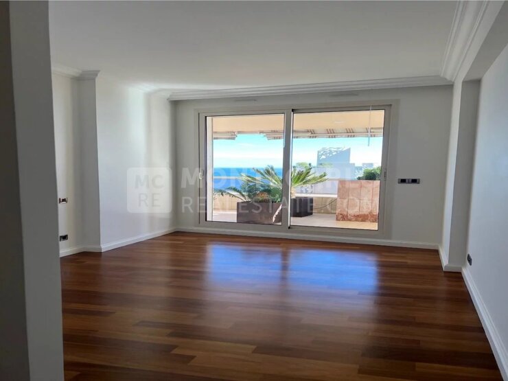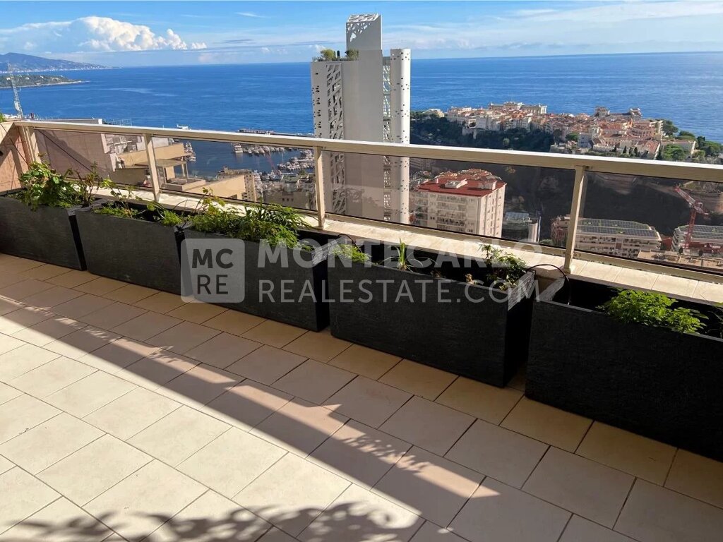 Situé dans une résidence luxueuse dotée d’une piscine et d’un service de gardiens, au cœur du prestigieux quartier du Jardin Exotique, ce bel appartement en façade, en excellent état, bénéficie d’une luminosité exceptionnelle. Chaque pièce principale ouvre sur une spacieuse terrasse offrant une magnifique vue sur la mer.