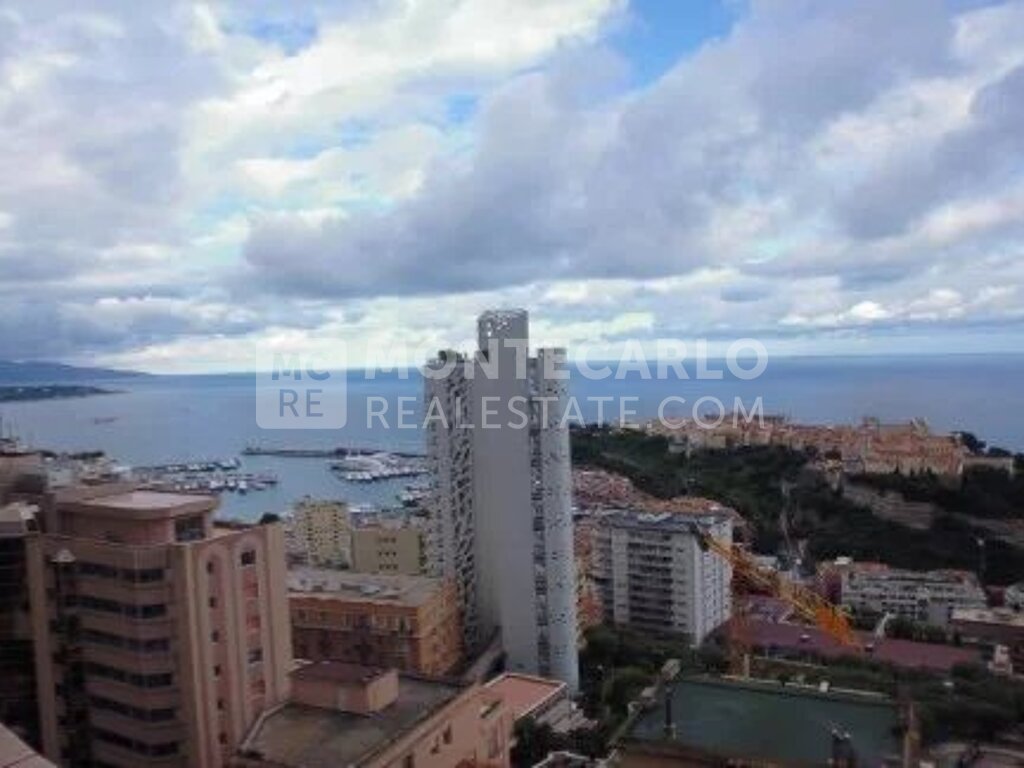 Situé dans la prestigieuse résidence PATIO PALACE, dotée d’une piscine et d’un service de gardiennage, au cœur du très recherché quartier du Jardin Exotique, cet élégant appartement de 3/4 pièces entièrement rénové se trouve au 12ᵉ étage et offre une splendide vue mer.