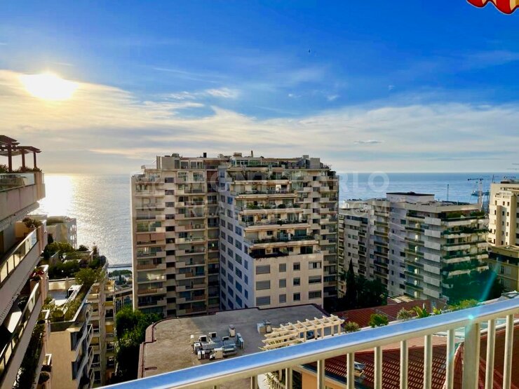 Au dernier étage d’une résidence de standing, au cœur du Carré d’Or, ce magnifique appartement qui s’étend sur tout le bloc de l’immeuble jouit d’une vue imprenable du Cap Martin jusqu'au Casino.