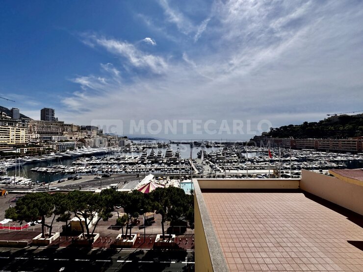 Nous vous proposons à la location ce très bel et agréable appartement de 2 pièces, situé sur la ligne de départ du Grand Prix de F1 et offrant une vue panoramique imprenable sur le Port Hercule. Il se compose d’une entrée, d’une chambre avec terra...