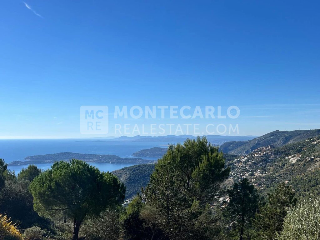 À l’extérieur, les espaces ont été pensés pour profiter pleinement du cadre paisible : piscine ensoleillée, pool-house, cuisine d’été et larges terrasses créent une atmosphère chaleureuse propice à la détente. La vue mer, dominante et spectaculaire, embrasse le village, les reliefs et jusqu’au Cap Ferrat, offrant un panorama exceptionnel de jour comme de nuit.