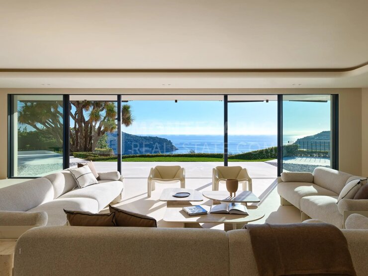 Mit ihren sechs geräumigen und luxuriösen Zimmern erfüllt die Villa die höchsten Ansprüche, mit exklusiven Ausführungen und einem bemerkenswerten Fluss zwischen Innen und Außen. Die majestätischen, von natürlichem Licht durchfluteten Innenräume öffnen sich zu weitläufigen Terrassen, die einen außergewöhnlichen Panoramablick auf das Mittelmeer bieten.