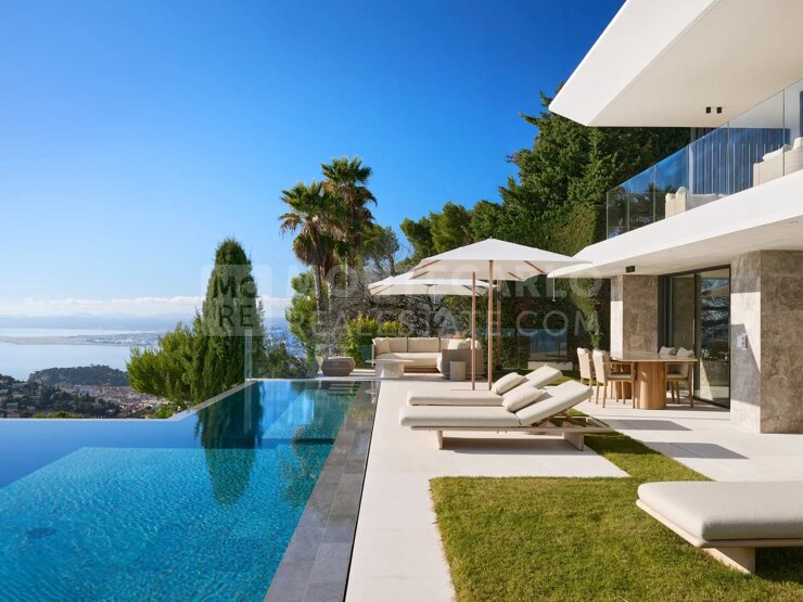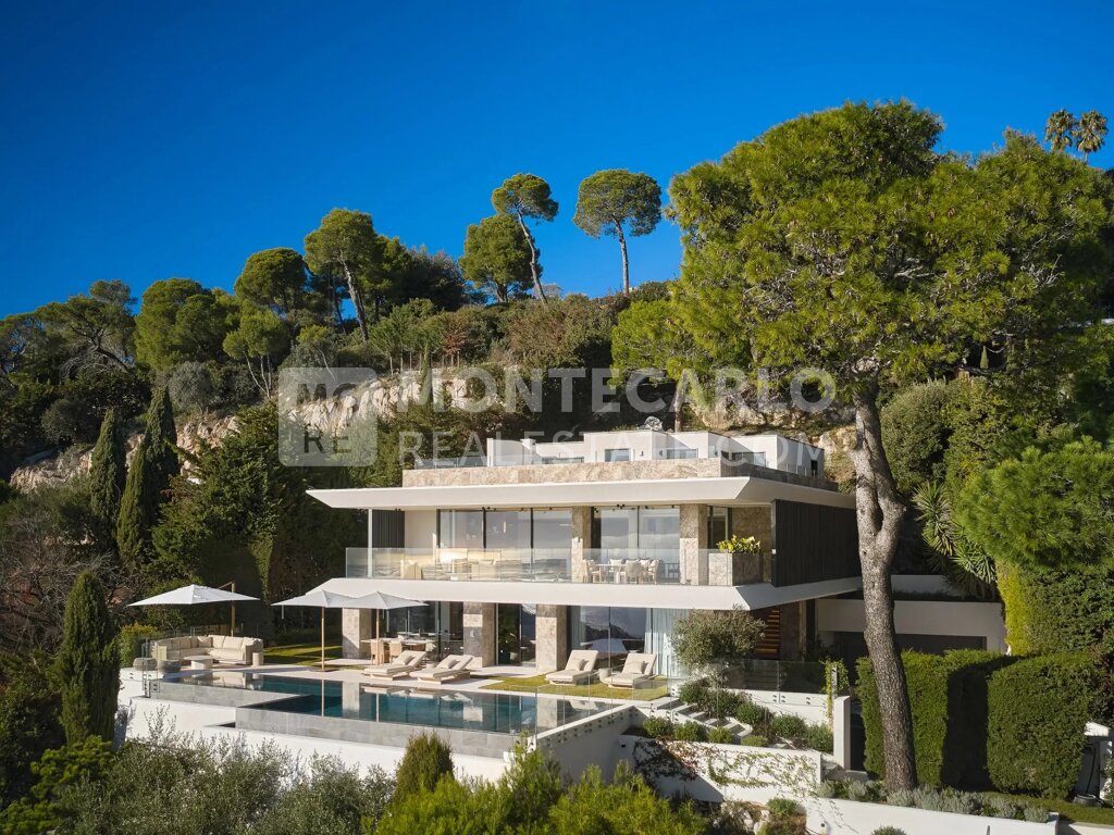Eingebettet im Herzen der prestigeträchtigen Domaine de Castellet, erstreckt sich diese spektakuläre Villa auf vier Ebenen über 600 m² und bietet einen atemberaubenden Panoramablick auf das Mittelmeer, von Cap Ferrat bis Saint-Tropez.