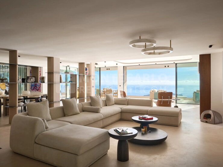 Sie ist ideal zum Entspannen und Empfangen und verfügt über großzügige Wohnbereiche, eine zum Esszimmer hin offene Küche, eine Bar und einen hochmodernen Kinosaal.