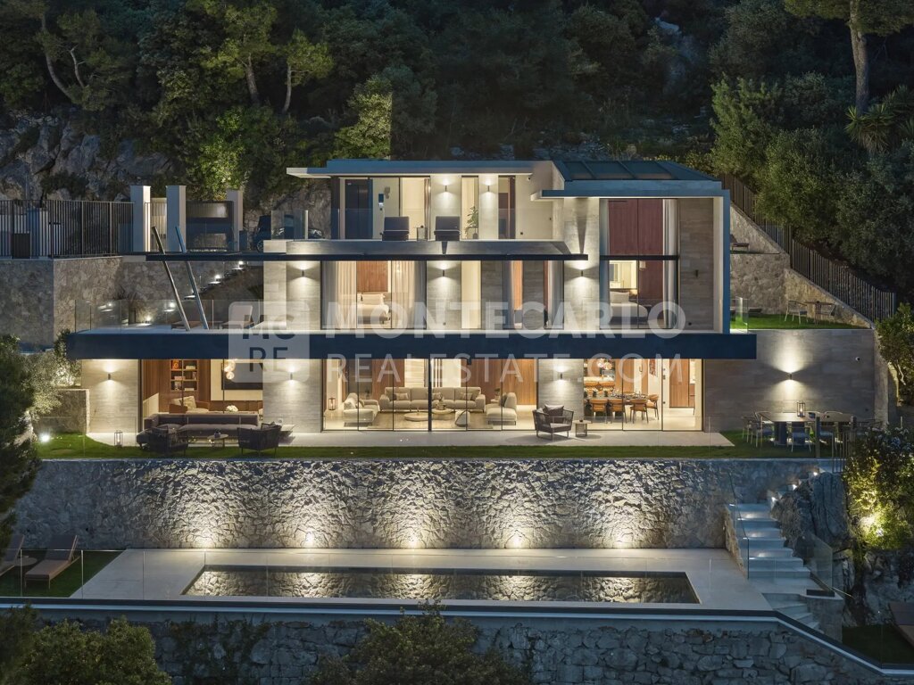 Diese auf vier Etagen verteilte Villa liegt im Herzen der prestigeträchtigen Domaine de Castellet und bietet einen atemberaubenden Blick auf das Mittelmeer mit einem einzigartigen Panorama auf Cap Ferrat und bis nach Saint-Tropez.