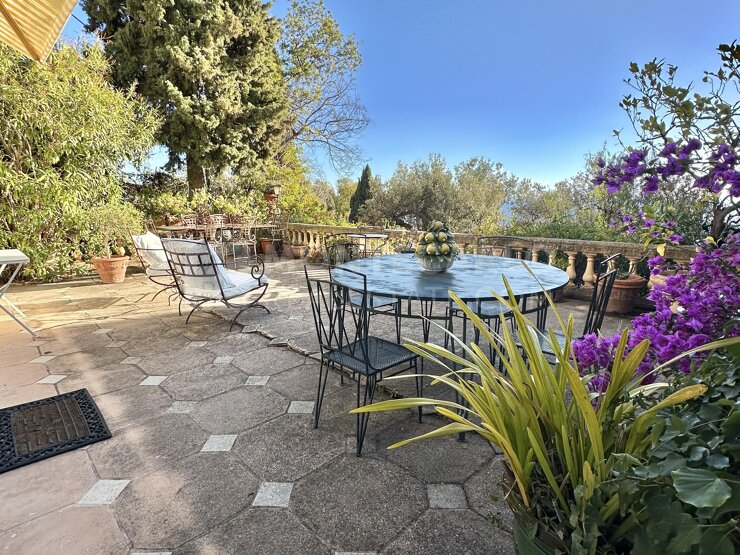 Die großzügige Terrasse, die sowohl vom Doppelwohnzimmer als auch von der Küche aus zugänglich ist, bietet einen idealen Raum, um das ganze Jahr über die Außenbereiche zu genießen und dabei eine spektakuläre, uneingeschränkte Aussicht zu bewundern.