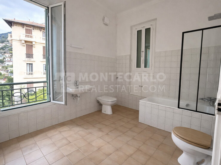iese 105,60 m² große Wohnung (Carrez-Gesetz) befindet sich im obersten Stockwerk eines kleinen Wohngebäudes, erstreckt sich über die gesamte Etage und bietet einen schönen freien Blick über die Stadt Menton.