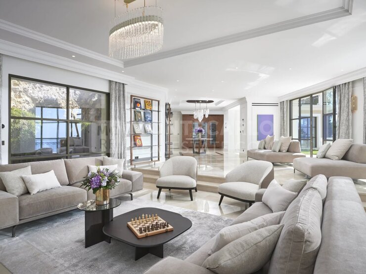 La villa accueille jusqu’à 12 personnes et propose de beaux volumes de réception, 6 chambres avec terrasses et 8 salles de bains, dans un esprit contemporain élégant et raffiné.