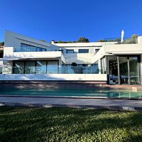 La maison offre un très bel espace de vie, avec le salon, la salle à manger et la cuisine ouverts sur la grande terrasse et la piscine, créant une véritable continuité intérieur/extérieur.