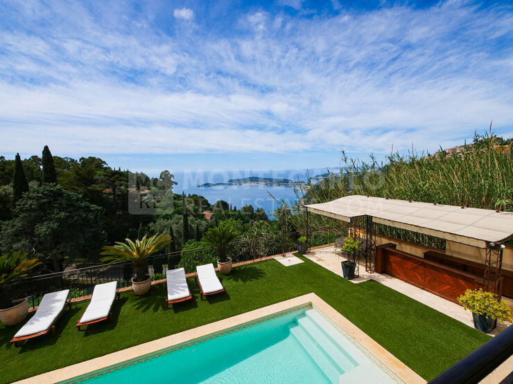 Proche du village d'Eze, ces deux propriétés avec piscine bénéficient d'une superbe vue panoramique sur la mer et d'une très bonne exposition.