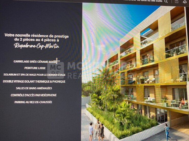 PENTHOUSE 4 PIÈCES d’environ 134 m² (NEUF). Proche des commodités et avec un accès facile vers Monaco (taxis ou bus) et des plages à pieds. Vous profiterez d'une BELLE VUE MER vers le Larvotto et le Cap Martin, avec une exposition Sud. Voici une résidence à l’architecture contemporaine couleur « bronze doré », avec cet appartement toit terrasse - solarium sur le toit au dernier étage (107m²) avec un spa de nage; et aussi un balcon de 36m². Il est complété d'une cave et 2 Places de parking au ré de chaussée au sein de cette belle résidence en Centre Ville. En cours de construction, livrable 2026 avec les droits de Notaire réduits.
