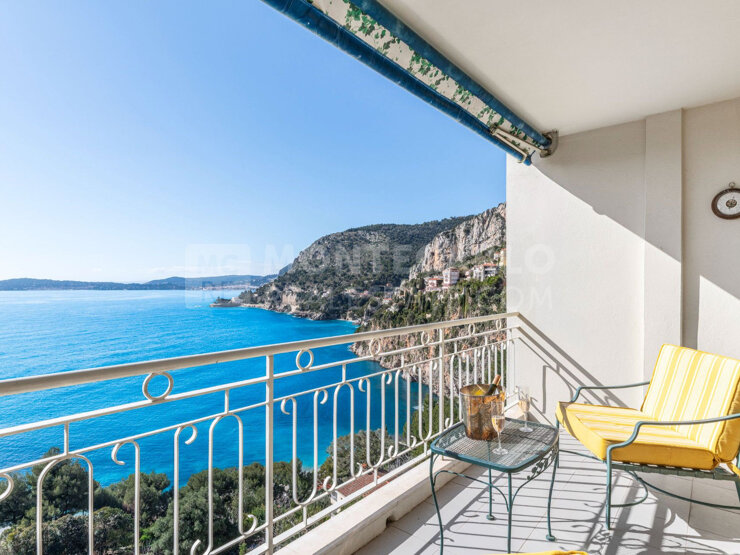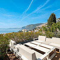 Magnifique penthouse de caractère de 96 m² niché au 8ème et dernier étage d'une résidence cossu sécurisée avec gardien au coeur d'un parc paisible, dans un quartier recherché et résidentiel de Cap-d'Ail, à quelques encablures de la mythique plage de la Mala.