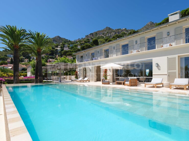 Villa d’exception de 655 m² avec vue mer, 6 chambres et prestations ultra-luxueuses : cinéma, spa, hammam, salle de sport et maison d’hôtes. Un art de vivre rare et raffiné.