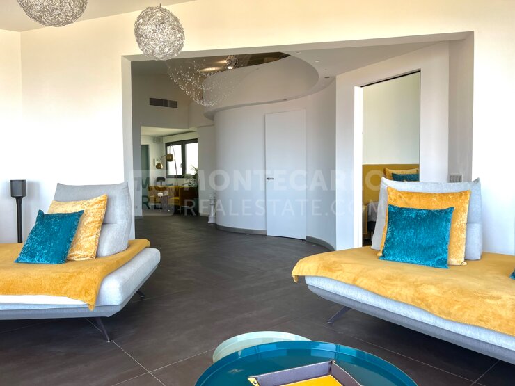 Très bel appartement situé au dernier étage de la résidence. Il offre des très beaux espaces avec 1 chambres en rez-de-chaussée de chaussé et 1 chambre en mezzanine, 2 salles de bain. des nombreux rangements, cuisine entièrement équipé, terrace vue mer. Appartement entièrement meublé.