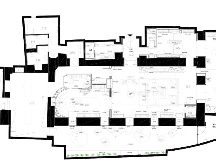 - une entrée, un grand salon, un salon VIP, un petit salon avec sa cabine d’essayage, 1 powder room, des toilettes hommes femmes, un coin cuisine, un bureau, un atelier, un espace de stockage et une terrasse privée