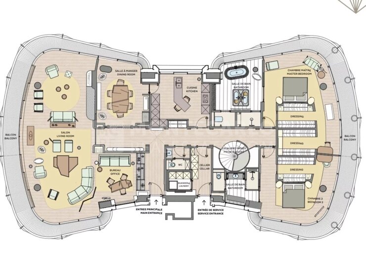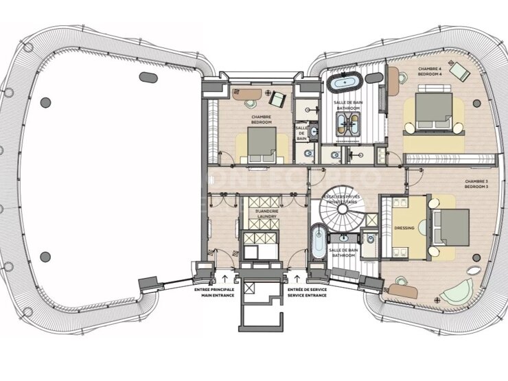 Disponible dès juin 2026 Magnifique 6 Pièces en duplex non meublé situé au coeur du Carré d'Or au sein de la luxueuse Résidence One Monte Carlo, l'appartement est situé au 4ème et 5ème étage de l'immeuble E avec une surface habitable de 480m2 et environ 117m2 de terasses.