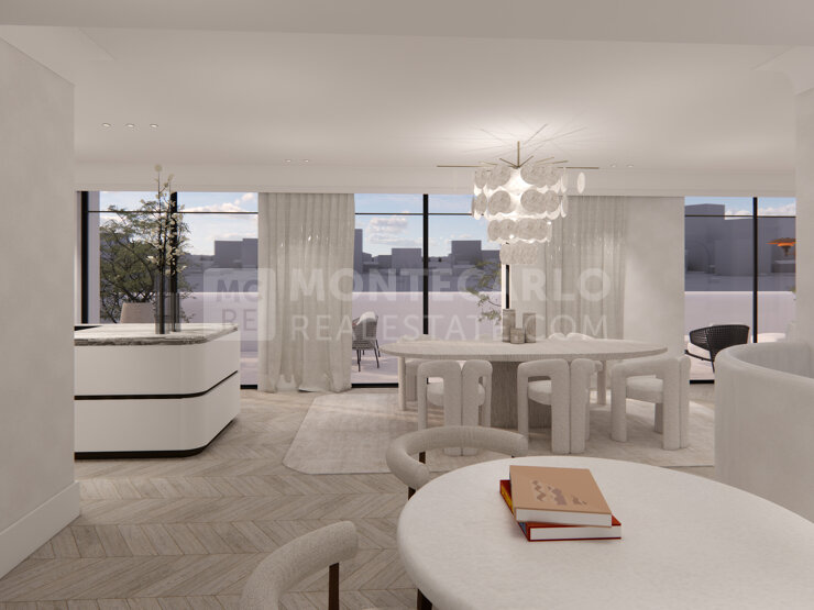 Situé au sein du quartier "Monte-Carlo", sur le célèbre Boulevard des Moulins dans un immeuble bourgeois, cet appartement neuf avec prestations luxueuses est composé de 3 chambres avec 3 salles de bain, d'un salon, d'une salle à manger et d'une cuisine ouverte équipée ainsi que de 2 toilettes. L'appartement dispose aussi de deux grandes terrasses et une toiture terrasse avec jacuzzi. 2 parkings inclus.