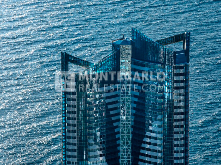 L’appartement se distingue par son hall d’entrée majestueux, ses quatre chambres avec dressings et salles de bains attenantes, ainsi que deux vastes terrasses qui offrent une vue panoramique sur la Méditerranée et les côtes monégasques, françaises et italiennes.