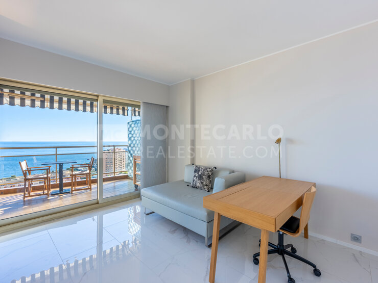 Boulevard d'Italie : Diese stilvolle 2-Zimmer-Wohnung zum Verkauf in der Annonciade Residence bietet ein sehr modernes Interieur und einen schönen Panoramablick, perfekt gelegen am Boulevard d'Italie, in der Nähe der Strände von Larvotto und nur wenige Gehminuten vom prestigeträchtigen Casino-Platz entfernt.