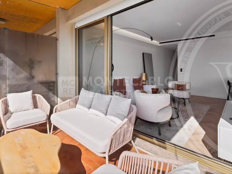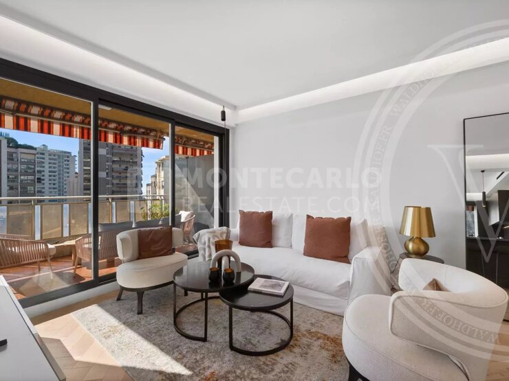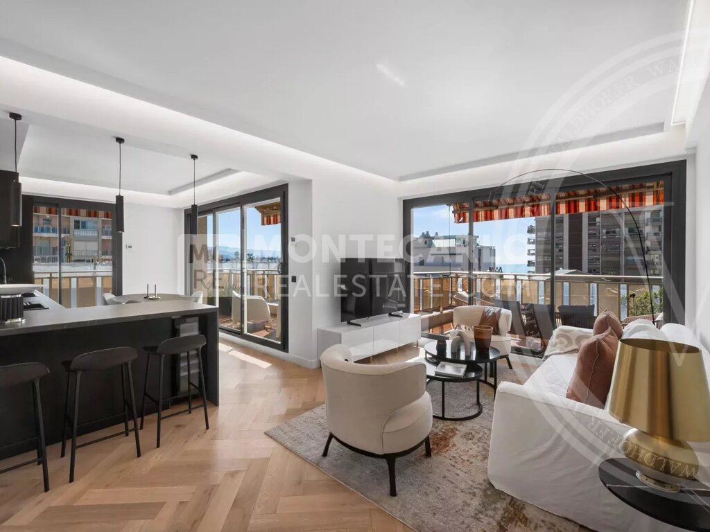 Casino, Monte-Carlo Dans la prestigieuse résidence Buckingham Palace, au cœur de Monte-Carlo, cet appartement de 3 pièces magnifiquement rénové offre un cadre de vie contemporain et raffiné dans un emplacement de choix. Situé en étage élevé et baigné de lumière naturelle grâce à son exposition sud-est, l'appartement s'étend sur 131 m² au total, dont une généreuse terrasse de 27 m² offrant des vues dégagées sur la ville et un aperçu de la mer.