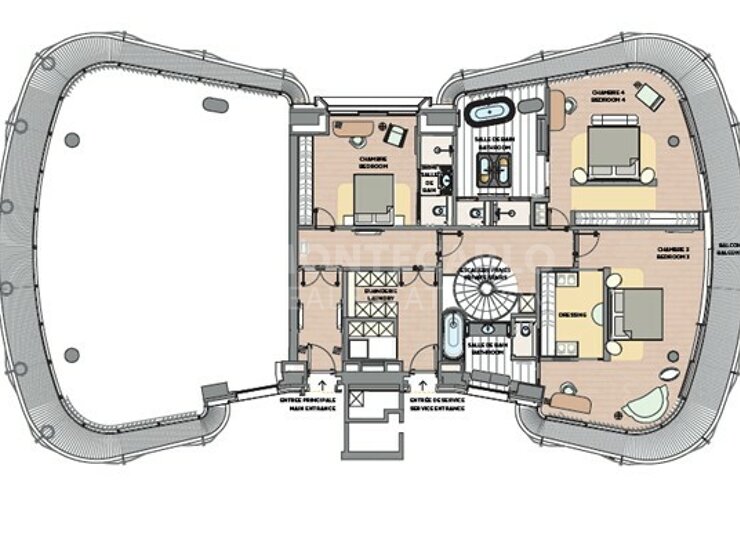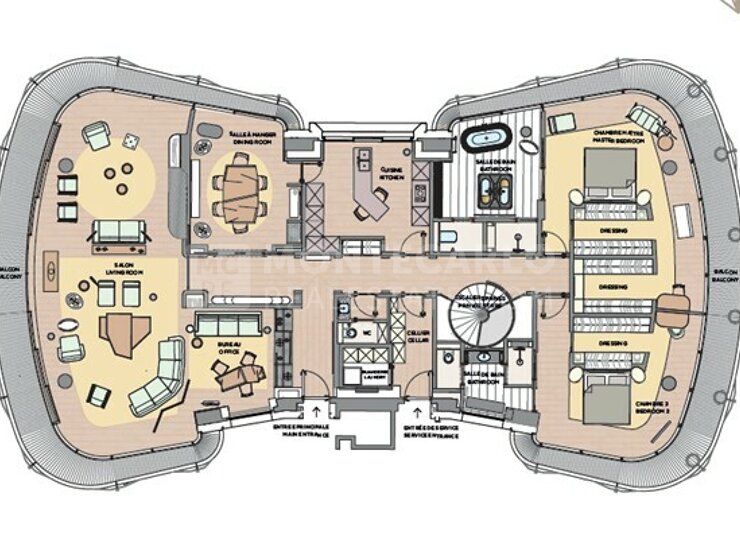 Ce magnifique duplex offre 480 m² de surface habitable, des balcons entourant l’appartement, avec une vue magnifique sur la place du Casino et la mer.