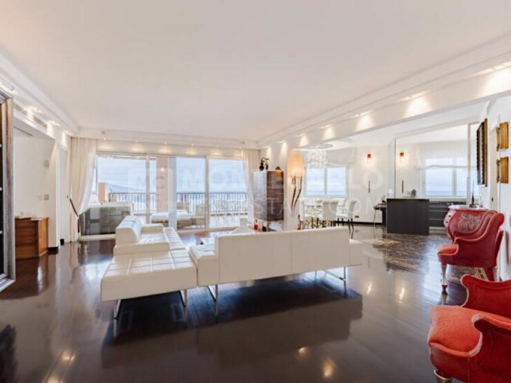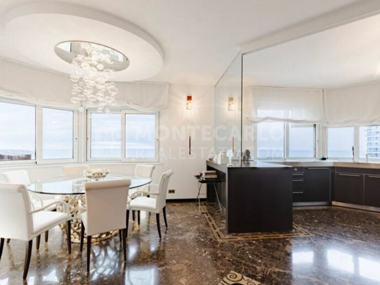 L’appartement est composé d'une belle entrée, un vaste double séjour/salle à manger avec cuisine ouverte entièrement équipée donnant sur une terrasse, une chambre avec dressing et salle de douche en suite ouvrant sur la terrasse, une deuxième chambre avec accès à un balcon, une troisième chambre avec salle de bains en suite, ainsi qu’un bureau disposant également de sa propre salle de bains.