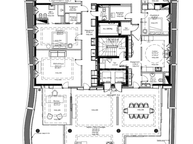 5 chambres toutes accompagnées de leur salle de bains / douches, un bureau-bibliothèque, une cuisine indépendante et entièrement équipée avec de l'électroménager haut de gamme, un toilette de service et une buanderie complètent l'appartement.