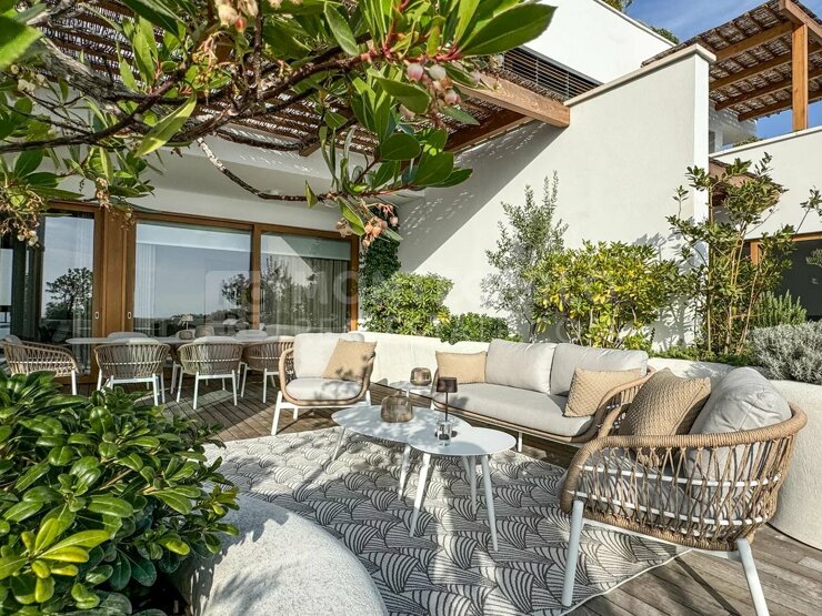 Die Wohnung verfügt über eine großzügige Terrasse von 53 m², die einen atemberaubenden Panoramablick auf das Meer bietet.