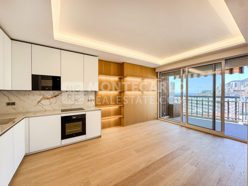 Willkommen in dieser neu renovierten 2-Zimmer-Wohnung mit ca. 65 m² Wohnfläche, gelegen in begehrter Südwest-Lage nur wenige Schritte vom Carré d'Or. Die lichtdurchfluteten Räume und der offene Grundriss schaffen eine besonders freundliche und einladende Atmosphäre. Genießen Sie von der Terrasse einen atemberaubenden Panoramablick aufs Meer – ein Highlight dieser Immobilie! Die Wohnung befindet sich in einem gepflegten Gebäude mit 24 / 7 Concierge Service und direktem Zugang zu einem Supermarkt – ideal für den täglichen Komfort. In unmittelbarer Nähe finden Sie elegante Boutiquen, charmante Cafés und das renommierte Hotel de Paris. Eine perfekte Kombination aus urbanem Lebensstil und mediterranem Flair.