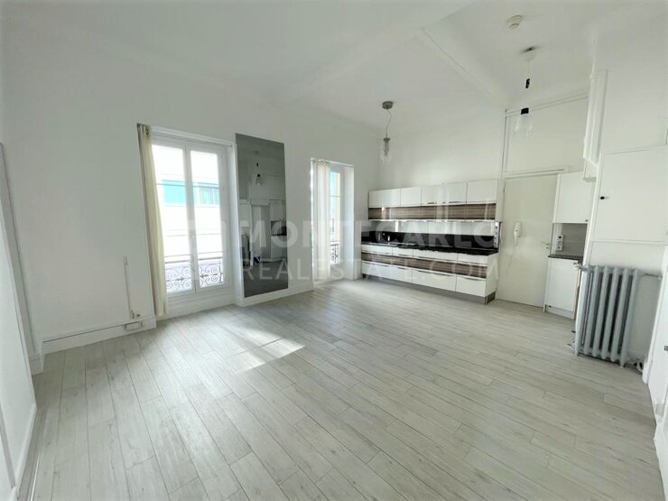 Palais de la Scala - Schöne 2-Zimmer-Zimmer sehr hell in einer Residenz im goldenen Quadrat. Dieses 2-Zimmer-Zimmer hat eine sehr schöne Deckenhöhe und einen freien Blick auf die Gärten des Sun Tower. Gemischte Nutzung (Möglichkeit der Büroräume).