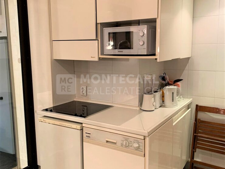 Dieses möblierte Studio eignet sich für gemischte Nutzung. Es befindet sich in einer ruhigen Wohngegend, in der Nähe des Parc Princesse Antoinette, innerhalb einer prestigeträchtigen Residenz mit Sicherheitsdienst.
