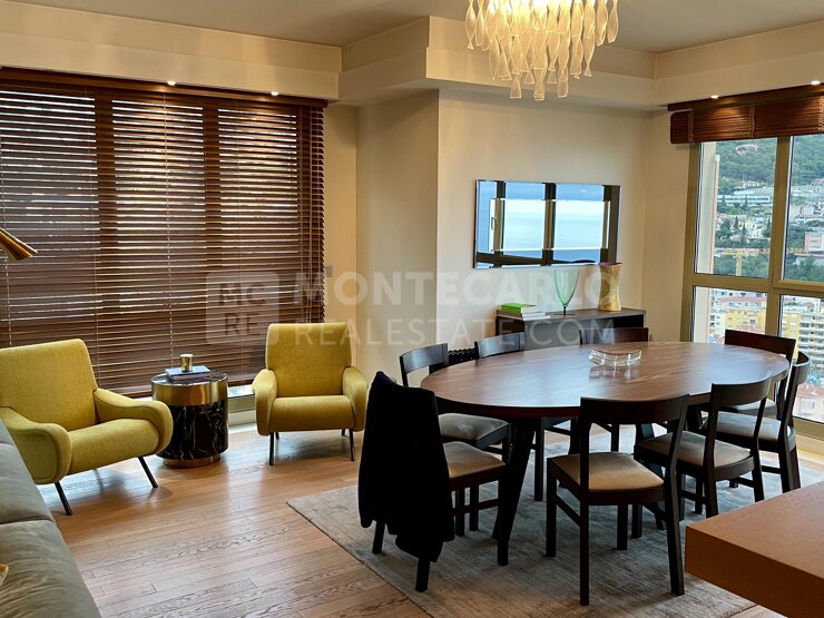 Dans le quartier du Moneghetti, ce bel appartement avec toit terrasse offre un ensoleillement optimal tout au long de la journée ainsi qu'une vue panoramique sur la mer, le port et le Rocher.