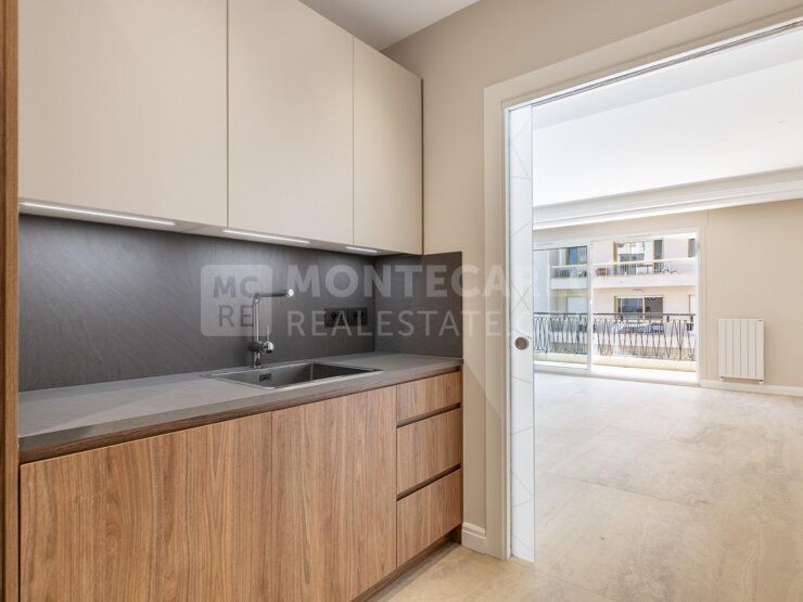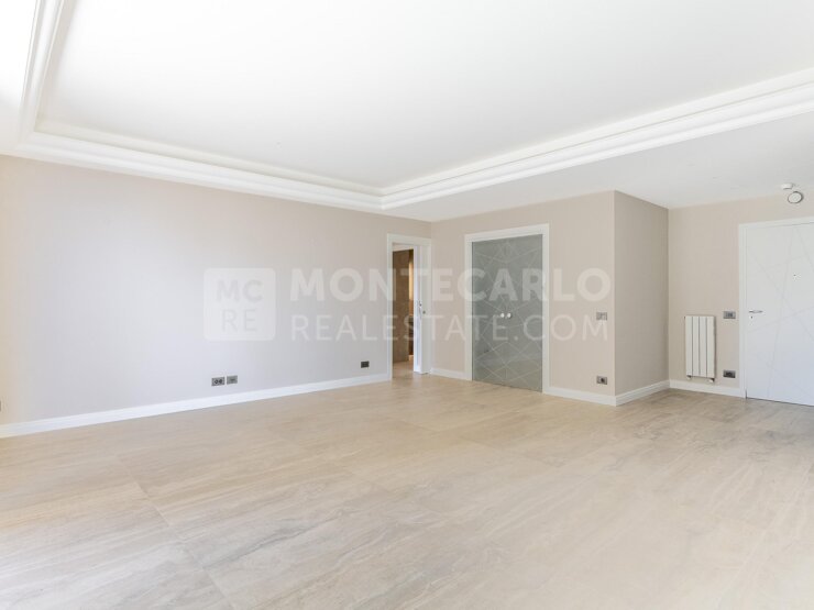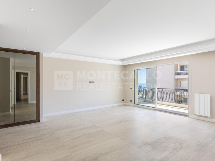 Cet appartement 3 pièces entièrement refait à neuf offre une position centrale sur la Place des Moulins. Sobre et élégant, il bénéficie d'une belle luminosité et d'une vue très agréable sur la mer et la Principauté.
