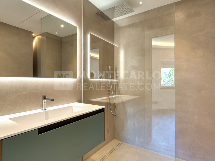 Magnifique appartement entièrement rénové avec des matériaux de grande qualité. Large terrasse, aperçu mer, cave et parking dans une résidence de luxe. Piscine et concierge 24/7. Proximité Monte Carlo Beach Club et Monte Carlo Country Club.