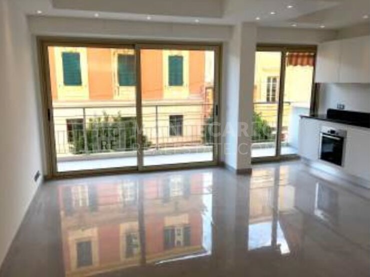 Un bel appartement de 3 pièces à usage mixte (habitation ou bureau), situé au 1er étage de l’immeuble « Le Petrel », résidence moderne avec ascenseur. Lumineux, et à quelques pas du Port Hercule, cet appartement a été entièrement rénové en utilisant des matériaux haut de gamme. Il se compose d’un hall d’entrée, d’une cuisine ouverte sur le salon avec terrasse, de deux chambres, également avec terrasse, et deux salles de bain. Vue sur la rue Piétonne Princesse Caroline et le port. Actuellement loué.