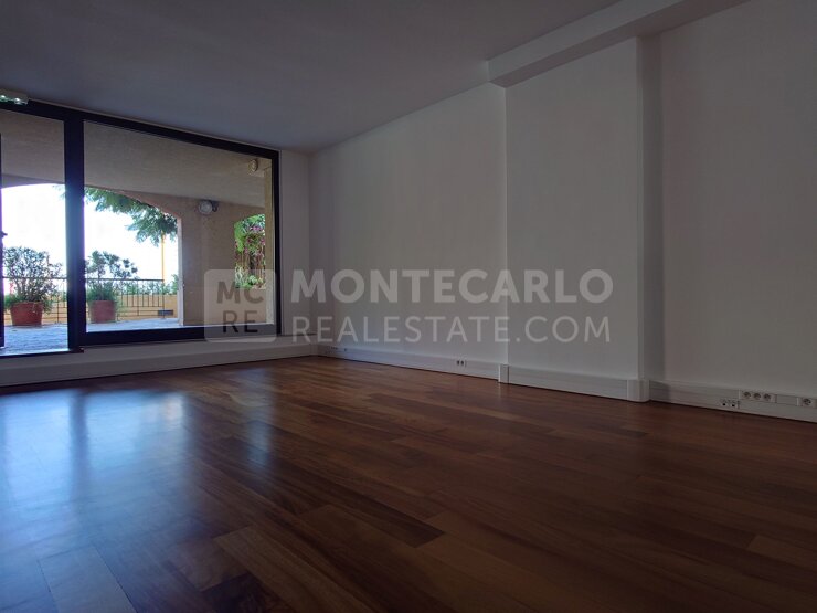Großes Büro mit großen Schaufenstern im Erdgeschoss des Raffael-Gebäudes im Hafen des ruhigen Viertels Fontvieille.