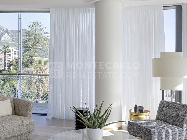 Wir freuen uns, Ihnen eine luxuriöse, voll möblierte und schön eingerichtete Maisonette-Wohnung zur Miete im prestigeträchtigen One Monte-Carlo anbieten zu können.