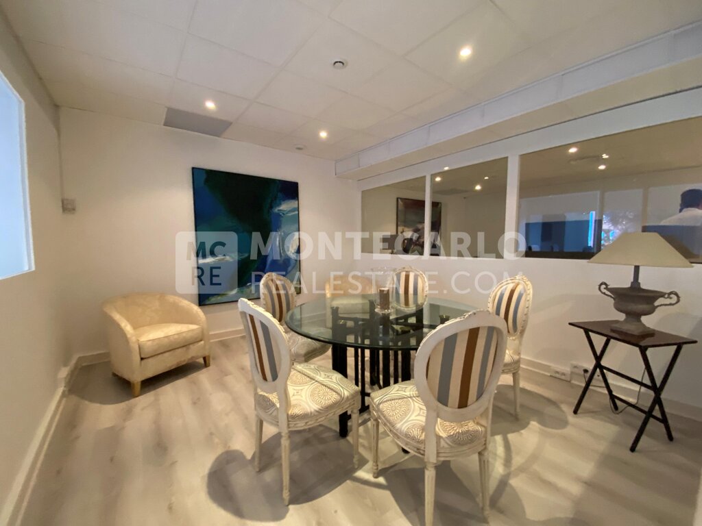 Renoviertes Büro mit großen Schaufenstern im Titien-Gebäude in der Wohngegend von Fontvieille, in der Nähe des Hafens.