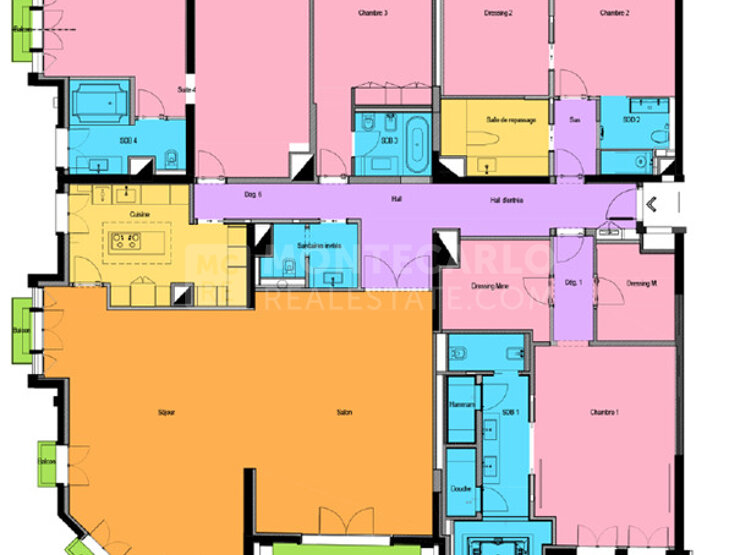Très bel appartement en cours de rénovation complète, situé dans une résidence prestigieuse de Monte-Carlo, en plein Carré d'Or. L'appartement sera prêt courant novembre 2025. Il se compose d'un hall d'entrée, un très grand salon/salle à manger, une spacieuse cuisine indépendante équipée, 2 belles chambres de Maître avec double dressing et salle de bains en suite, 2 autres chambres avec leur salle de bains, toilettes invités, buanderie, terrasses. Magnifique vue sur le Casino, ses jardins, la mer et les Spélugues (circuit F1). Un triple box fermé, 2 places de parking et une cave sont inclus. Bail de 2 ans minimum avec loyer fixe.