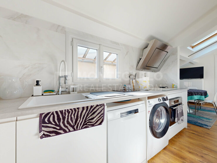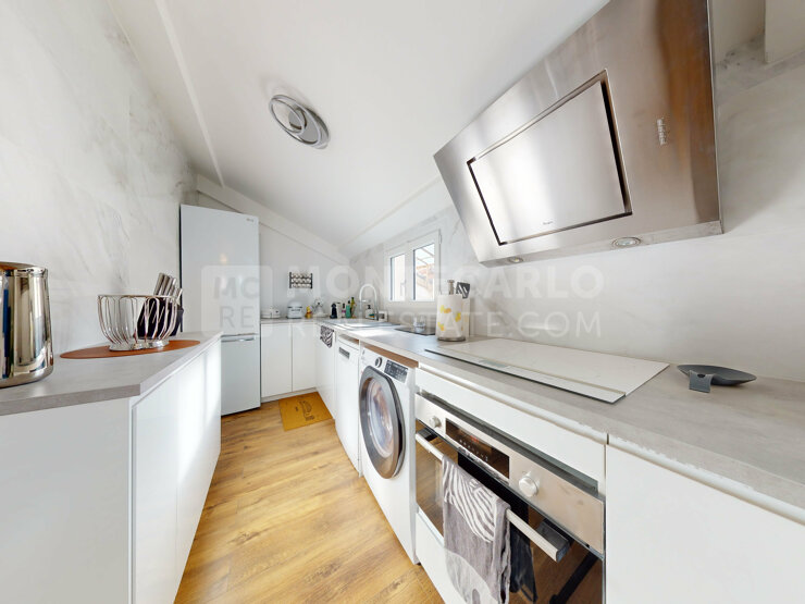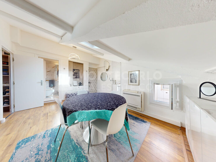 Ce charmant appartement, initialement classé comme un appartement de 4 pièces et sous loi 1235, a été aménagé en un confortable 3 pièces. Il est situé dans un immeuble bourgeois au cœur de la Condamine. L'appartement bénéficie d'une luminosité abondante et d'une tranquillité. Situé au dernier étage (sans ascenseur), il offre de magnifiques fenêtres de toit et a bénéficié d'une rénovation complète. L'appartement propose une cuisine équipée ouverte sur le séjour avec un espace repas, deux chambres à coucher, ainsi qu'une salle de douche avec toilettes.