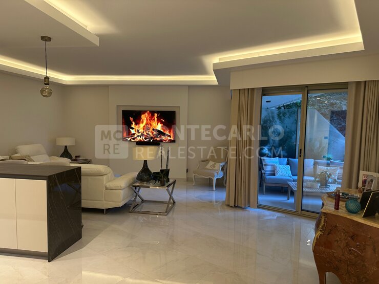 Magnifique appartement de 3 pièces rénové. Le hall spacieux dessert un grand séjour avec cuisine ouverte et un magnifique bar en marbre. Plus loin, le couloir dessert des toilettes invités, une suite parentale avec salle de bains attenante et une deuxième chambre avec une grande salle de bains. Toutes les pièces s'ouvrent sur une belle terrasse offrant une vue dégagée sur les montagnes.